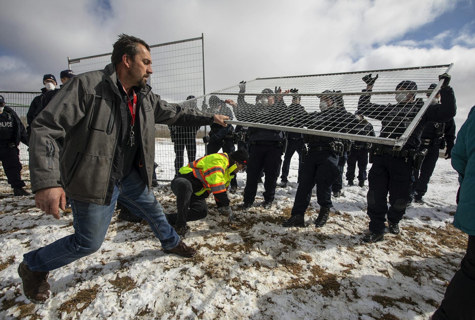 Gracelife Church Supporters Argue With A Non Supporter Near Edmonton On Wednesday April 7 2021 The Alberta Government Has Closed Down And Fenced Off A Church That Has Been Charged With Refusing